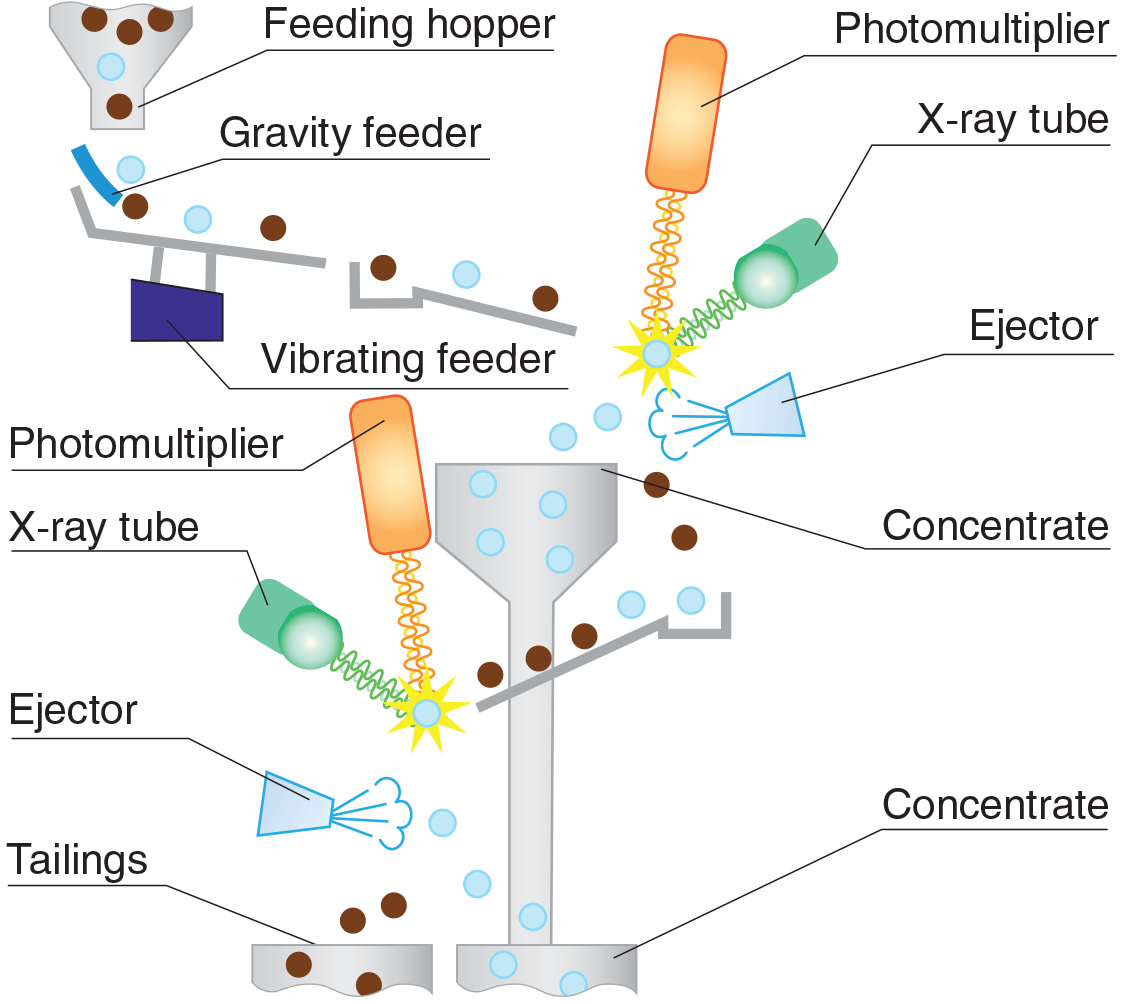 The principle of operation of the sorter is based on the use of the property of diamonds to luminesce under the exposure to X-rays and the difference of these properties in diamonds and associated luminescent minerals.