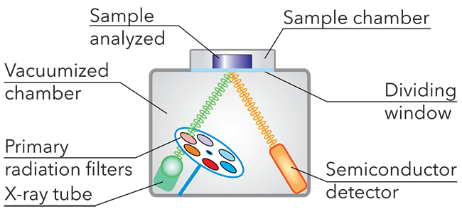 - Method of fundamental parameters - for quantitative determination of element content without using standard samples for calibration (for determination of alloy compositions).