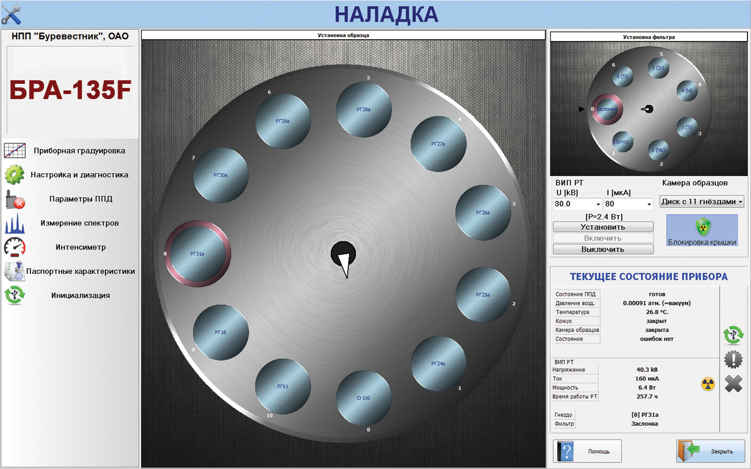 The BRA-135F is intended for the qualitative and quantitative determination of chemical elements in range from 9F to 92U of liquid, powder and solid samples.