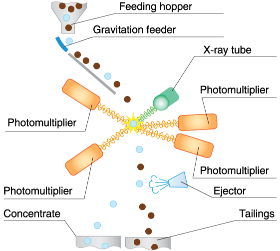 The principle of operation of the sorter is based on the use of the property of diamonds to luminesce under the exposure to X-rays and the difference of these properties in diamonds and associated luminescent minerals. This model is distinguished by its higher concentrate conditioning and its ability to recover low-luminescent and type 2 diamonds more efficiently than other similar models.