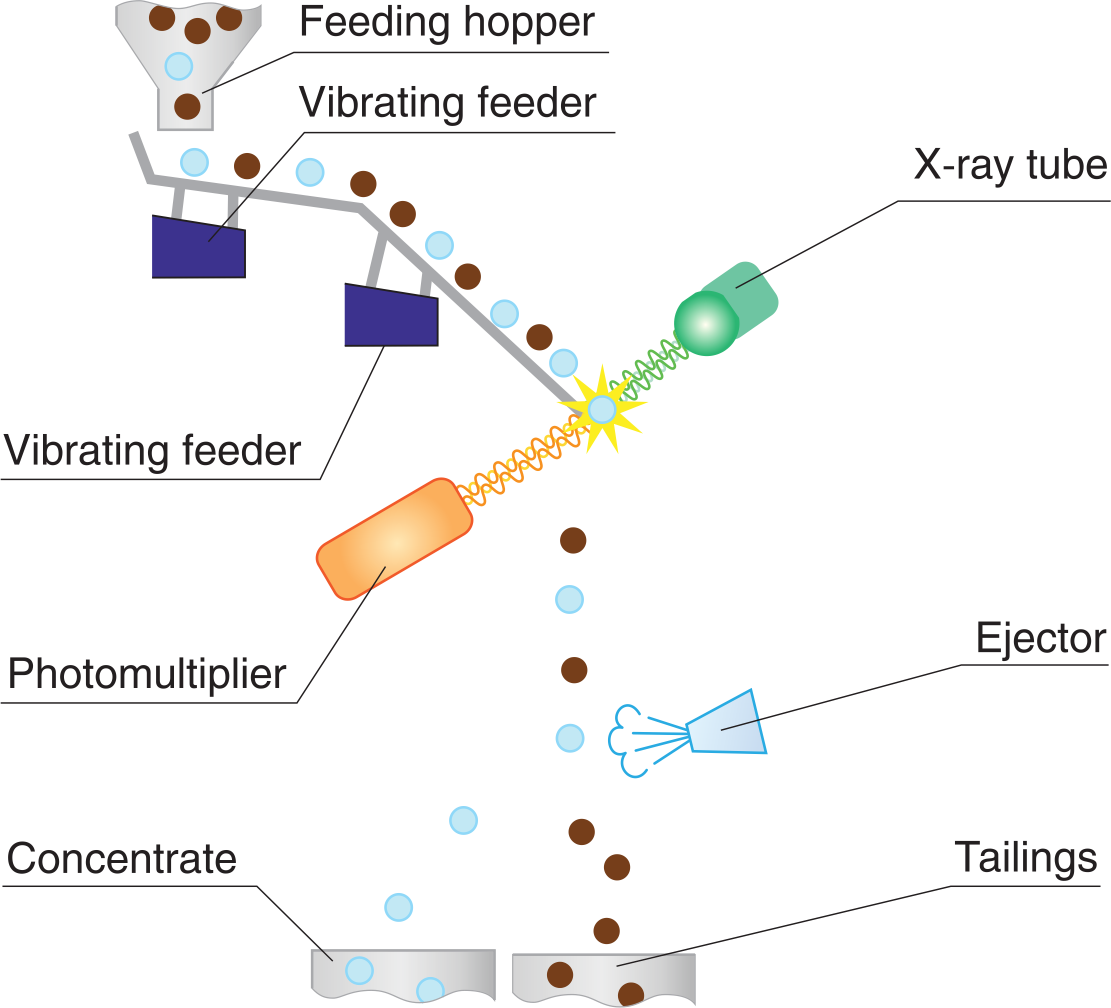 The principle of operation of the sorter is based on the use of the property of diamonds to luminesce under the exposure to X-rays and the difference of these properties in diamonds and associated luminescent minerals.
