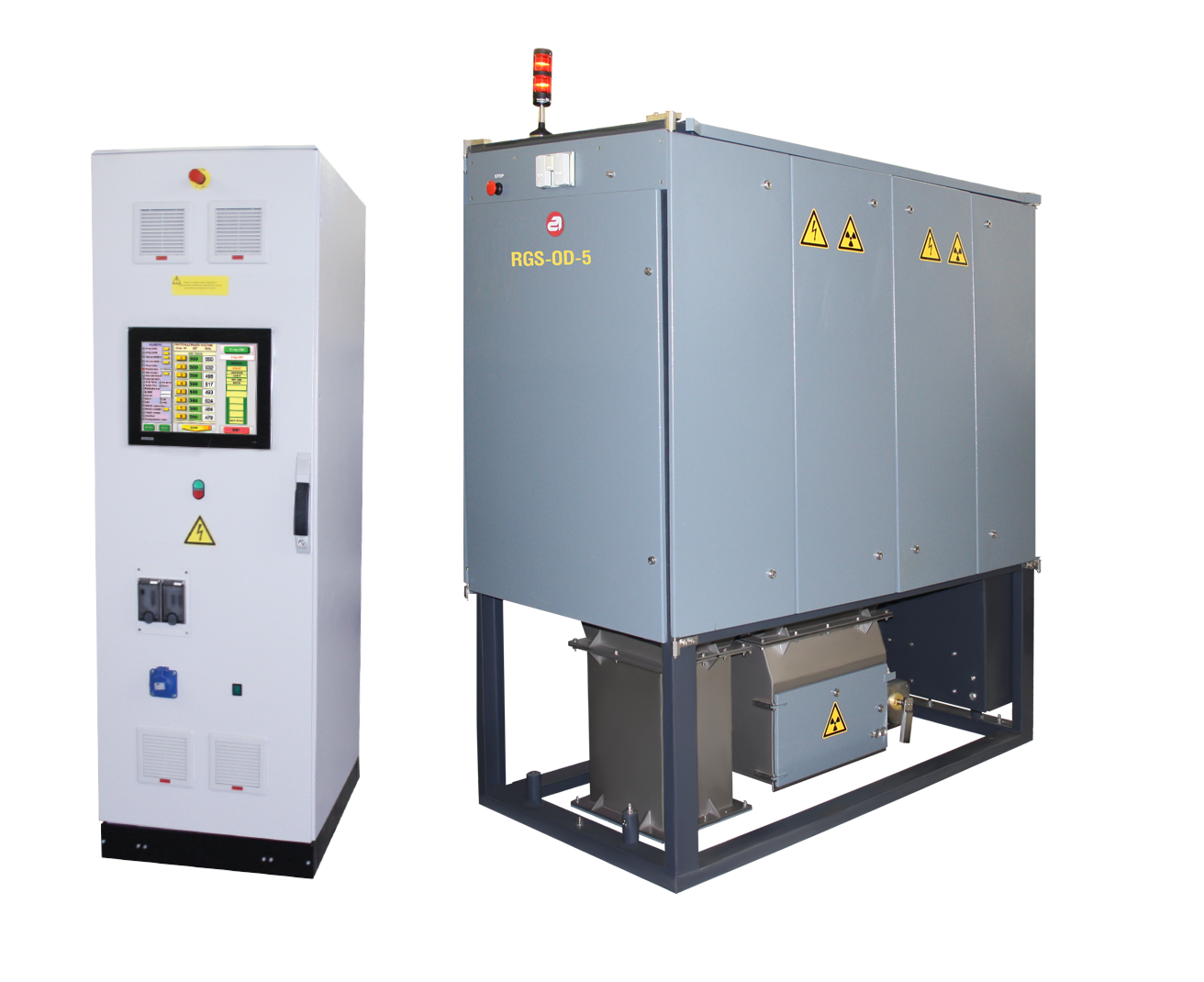 X-ray transmission sorter RGS-OD-5 is a diamond recovery machine designed for final concentrate treatment of dry material with size range -50+10 mm