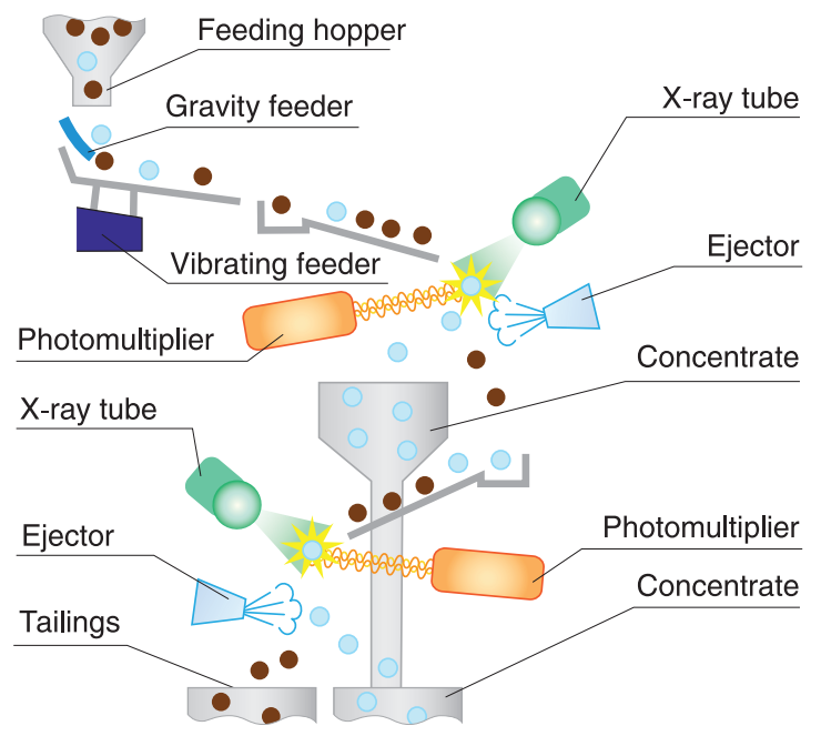 The principle of operation of the sorter is based on the use of the property of diamonds to luminesce under the exposure to X-rays and the difference of these properties in diamonds and associated luminescent minerals. This model is distinguished by its higher concentrate conditioning and its ability to recover low-luminescent and type 2 diamonds more efficiently than other similar models.