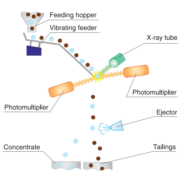 The principle of operation of the sorter is based on the use of the property of diamonds to luminesce under the exposure to X-rays and the difference of these properties in diamonds and associated luminescent minerals.
