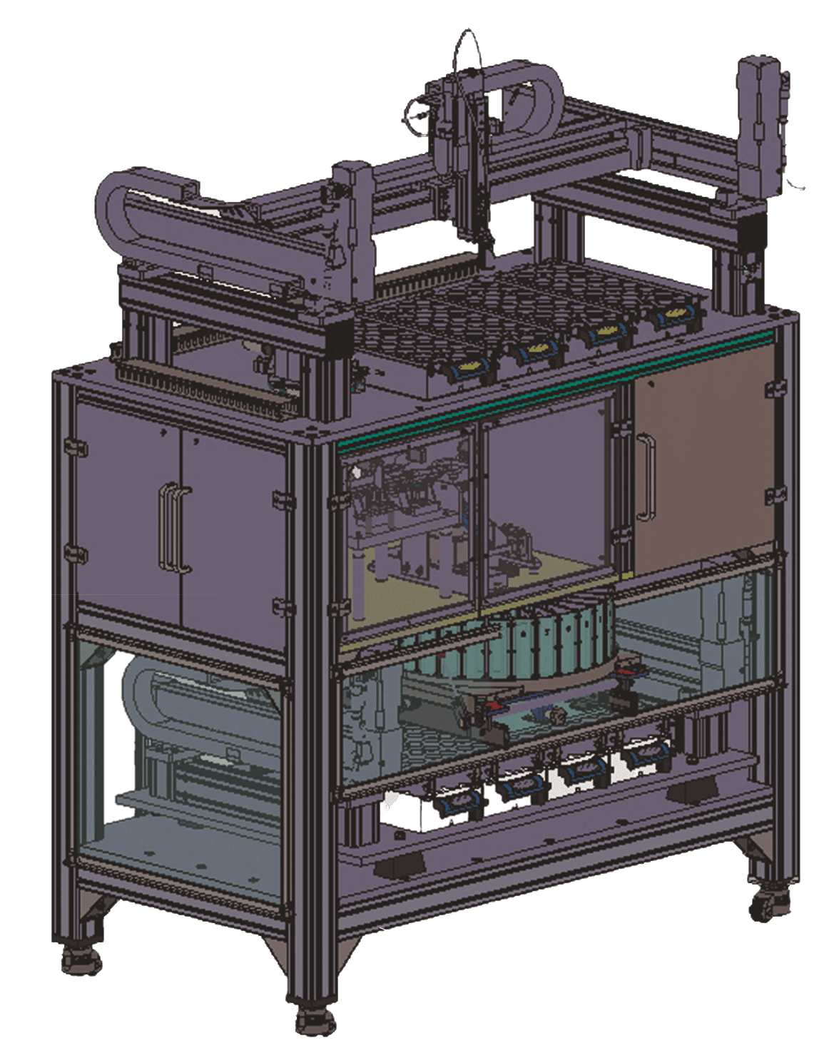 Предварительно классифицированные алмазы по стоимости, весу и иным признакам загружаются в 128 бункеров, далее алмазы доставляются в устройство разгрузки бункеров, где каждый бункер разгружается в устройство поштучной подачи кристаллов, после чего единичные кристаллы следуют в бункер весового устройства, где происходит высокоточное взвешивание. Данные передаются в управляющую программу, после чего бункер разгружается в камеру временного хранения и происходит подача следующего кристалла на весы, а предыдущий кристалл дожидается готовности к его приему распределителем кристаллов по выходным бункерам. Управляющая программа, после загрузки кристалла в распределитель, выдает команду распределителю поместить кристалл в один из 128 выходных бункеров, исходя из критерия: вес и стоимость материала во всех выходных бункерах должны быть примерно одинаковы. Таким образом производится последовательная сортировка содержимого всех входных бункеров.