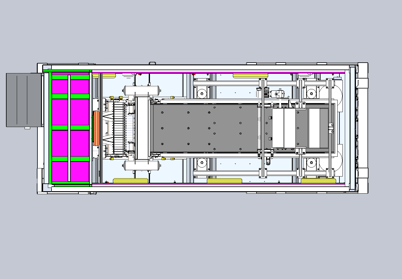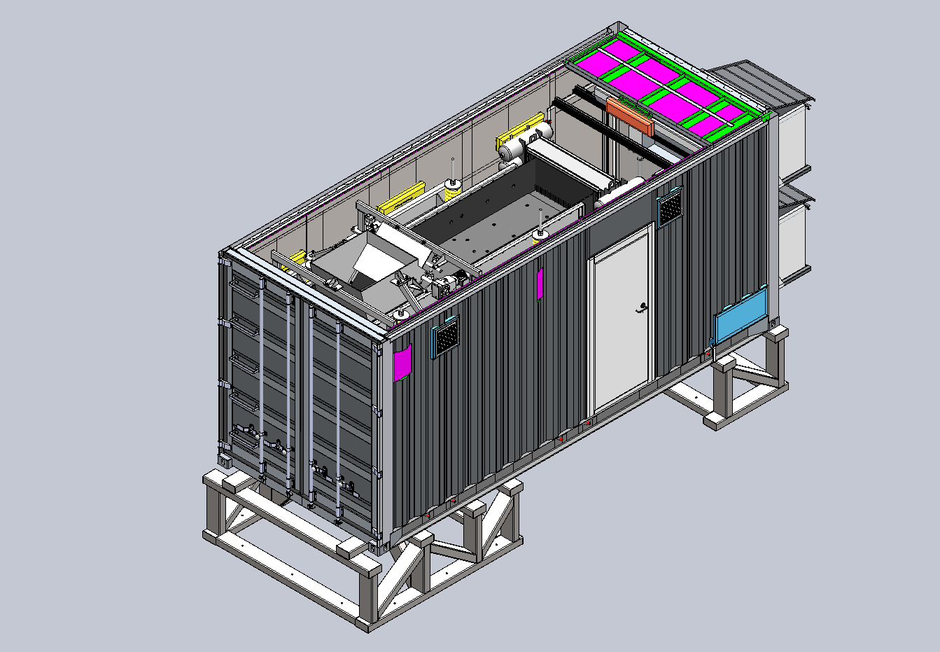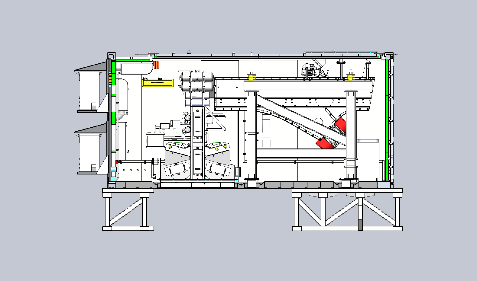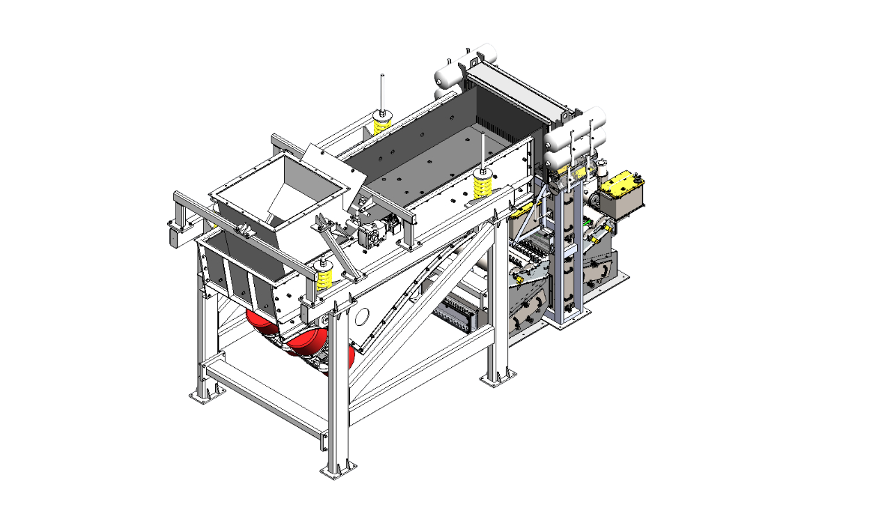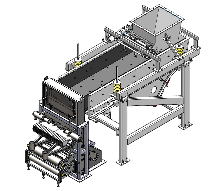 Сепаратор состоит из машины сортировочной и вибропитателя, установленных в двадцатифутовом морском контейнере и стойки автоматического управления в десятифутовом морском контейнере.