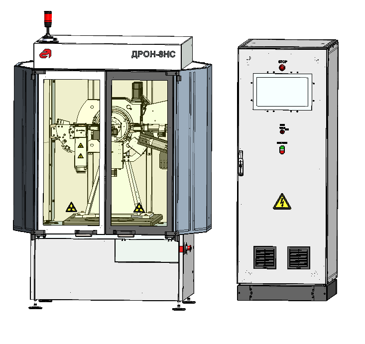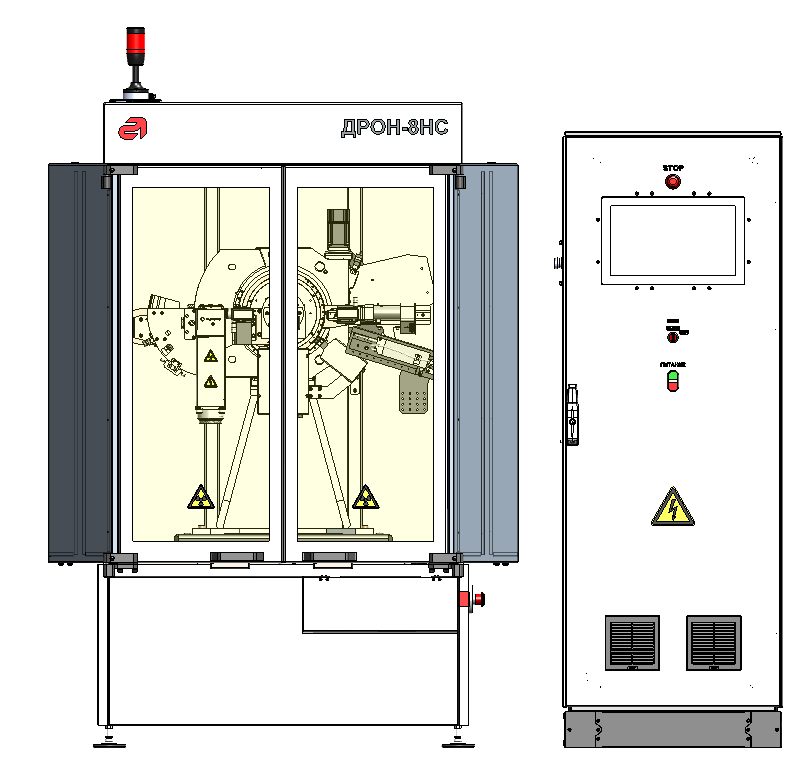 Специальное исполнение многофункционального рентгеновского дифрактометра ДРОН-8НС с вертикальным тета-тета гониометром и горизонтальным положением образца позволяет свести к минимуму поступление, генерацию и накопление пыли, аэрозольных частиц и химических паров внутрь помещения. Аппарат состоит из двух частей – стойки дифрактометрической и стойки питания и управления, располагающихся в защитных корпусах из нержавеющей стали (или из материалов со специальным покрытием). Конструкция стойки дифрактометрической доработана с точки зрения материалов, покрытий и крепежа.